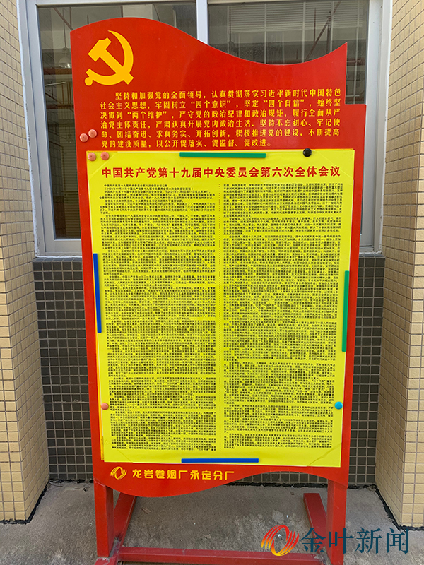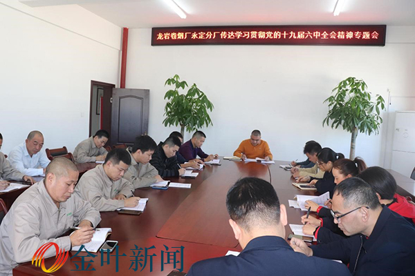 2021年11月26日下午,龍巖卷煙廠永定分廠組織黨員職工在科研樓四樓會議室傳達學(xué)習貫徹黨的十九屆六中全會精神。