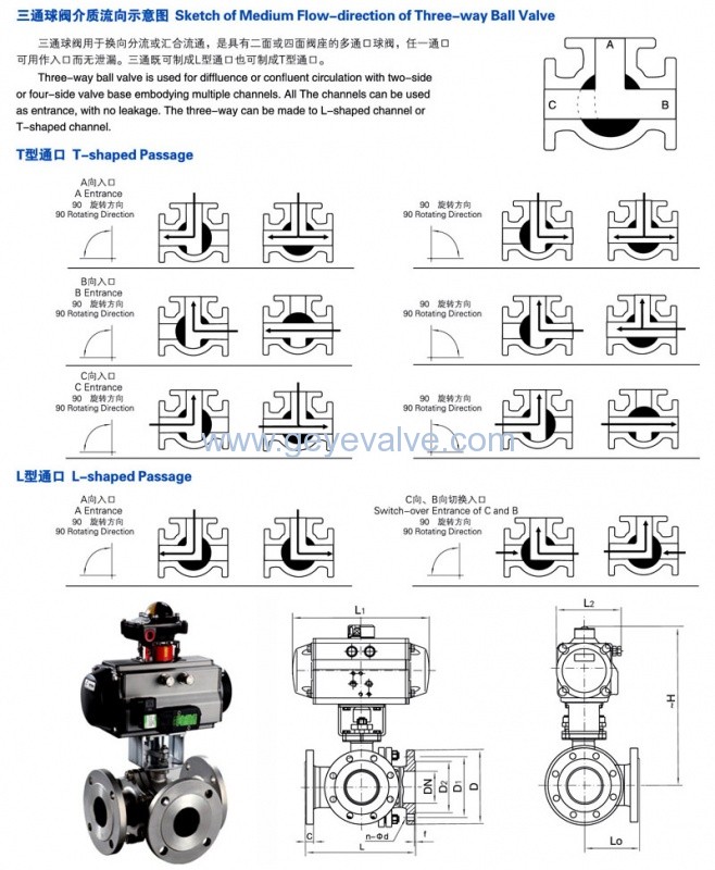 氣動(dòng)三通球閥_(T型,L型)氣動(dòng)三通球閥尺寸,結(jié)構(gòu)圖: